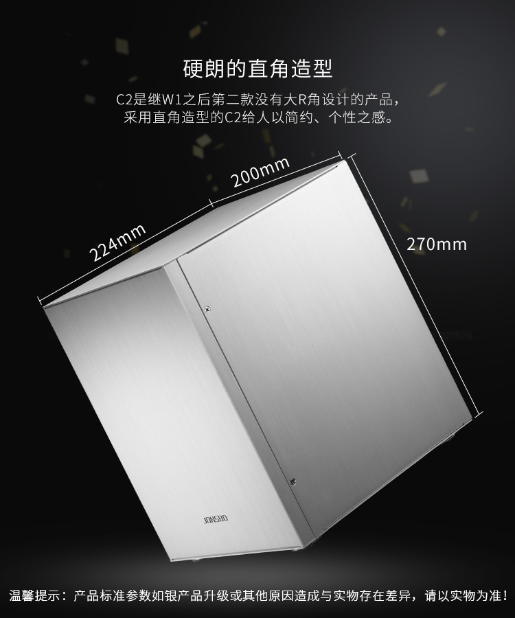 商品名称:乔思伯(JONSBO)C2 银色 MINI机箱(支持24.5*21.5CM尺寸内主板/全铝机箱/ATX电源/80MM高内散热器)