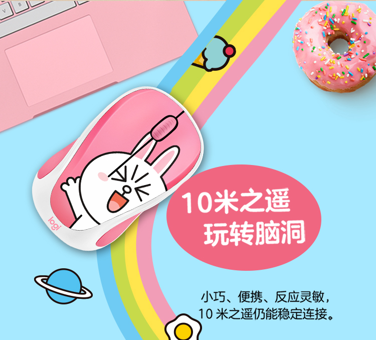 罗技(Logitech)LINE FRIENDS系列 鼠标 无线鼠标 办公鼠标 女性鼠标 可妮兔CONY 自营 带无线2.4G接收器