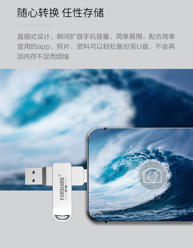梵想(FANXIANG)256GB Type-C USB3.1 手机U盘 F373 安卓手机电脑两用优盘