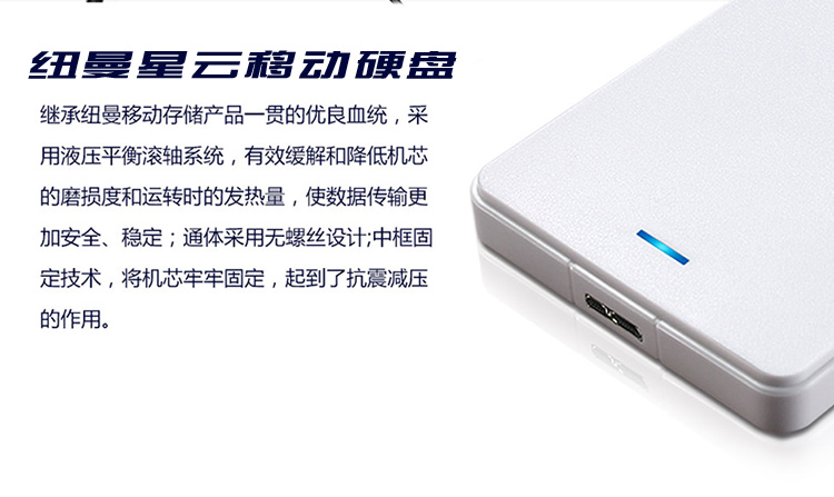 商品名称:纽曼(Newsmy)500GB USB3.0 移动硬盘 星云 2.5英寸 皓月白 海量数据备份存储 稳定耐用